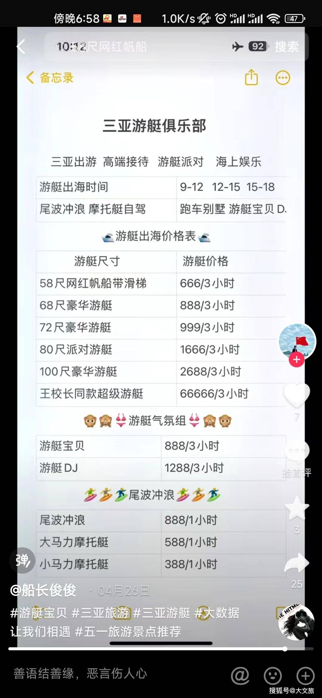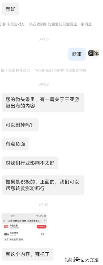 忽然有一天,一个在三亚从事游艇行业的人私信文旅君,表示:文旅君的“游艇宝贝”内容对行业影响不好,希望删掉。