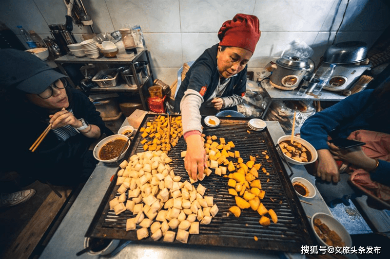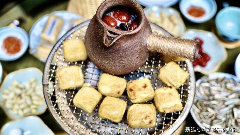和三两朋友围着火炉坐下,木炭在火盆中吐着火星子,一个个豆腐平铺在烤盘上,待烤得鼓鼓胀胀,两面金黄时,将豆腐蘸满蘸水撕成两半,蓬勃的热气从裂口释放,一口咬下,蘸水的火辣和豆腐的鲜嫩瞬间在口腔中迸发,身体仿佛一下就温暖起来,连心也飘飘然地沉浸在这份由古井、微风、阳光共同打造出来的诗意生活。