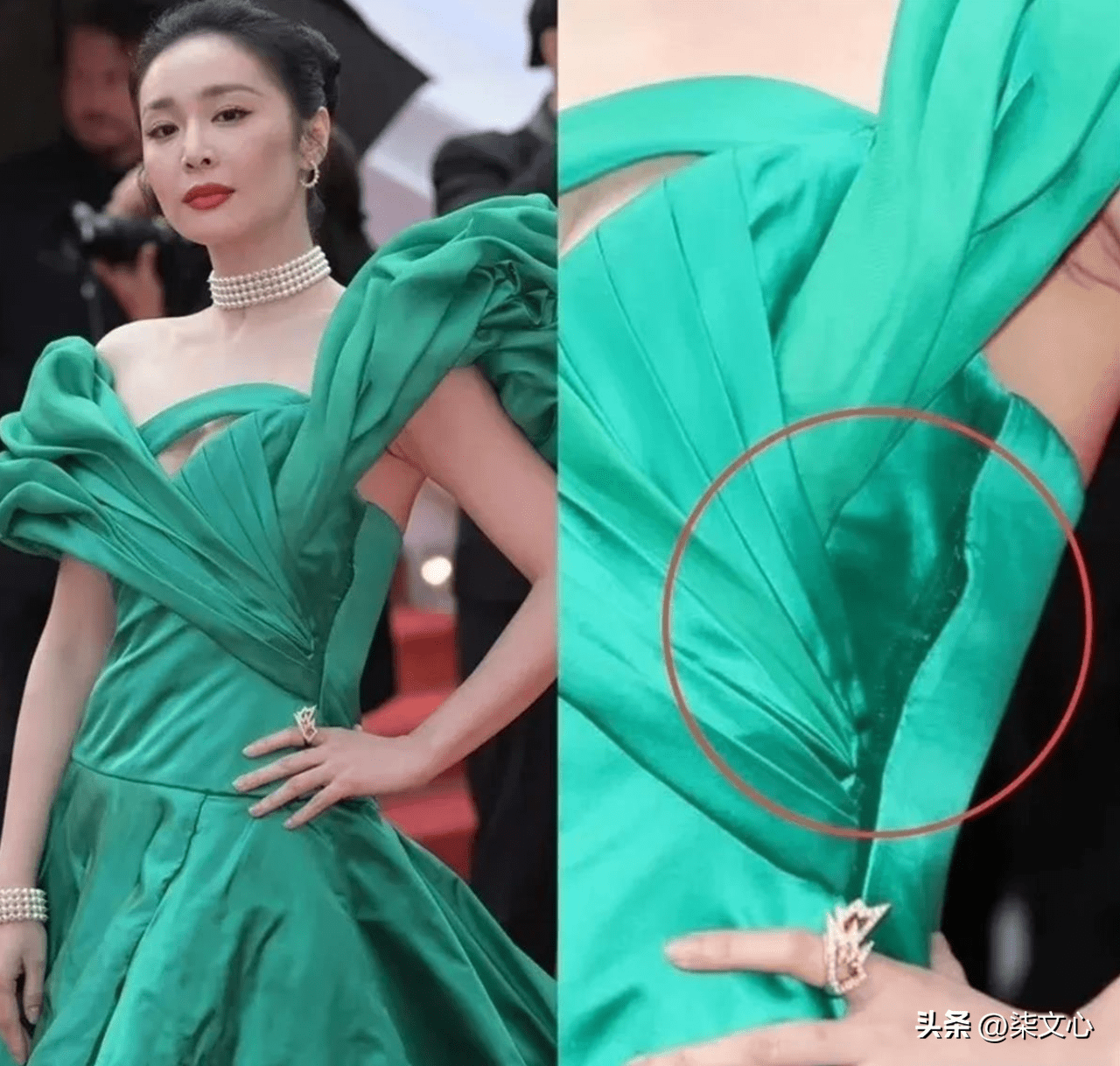 二是有网友发现高叶的礼服有开线和缝过改过的痕迹。