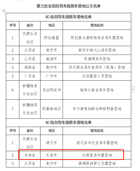第三批全国自驾车旅居车营地