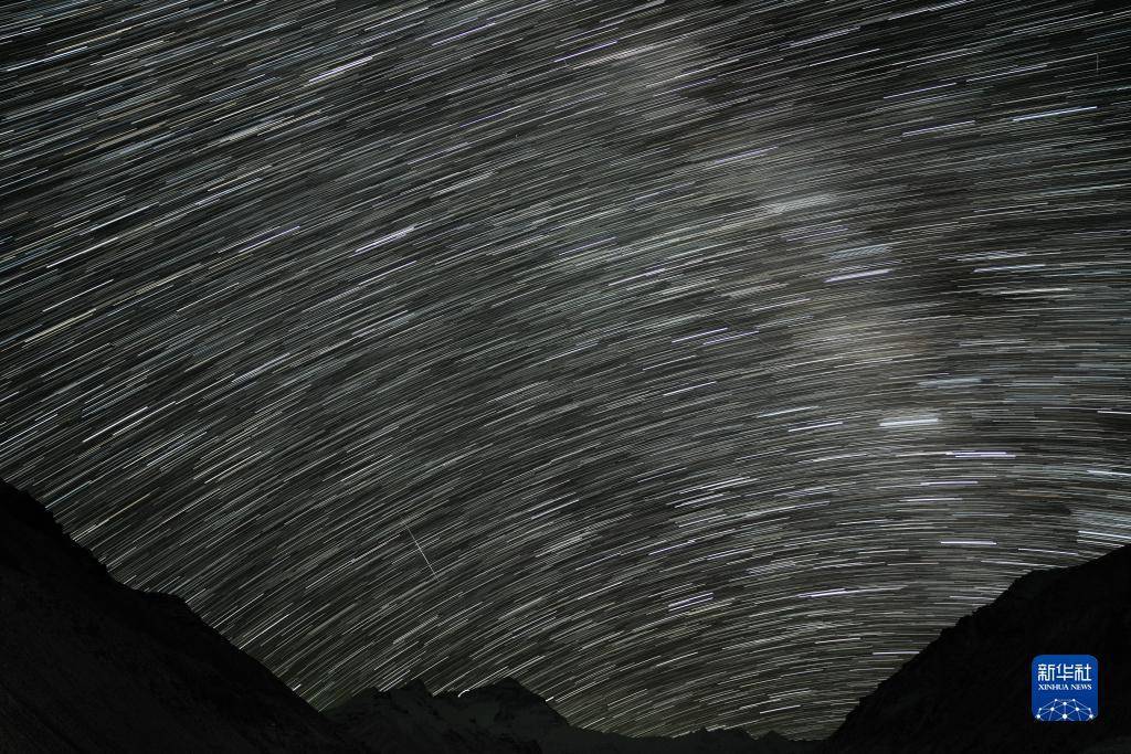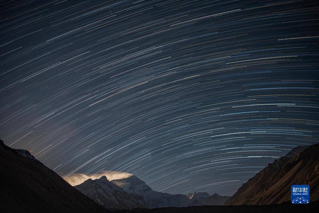 这是5月23日在珠峰大本营拍摄的星轨(合成照片)。