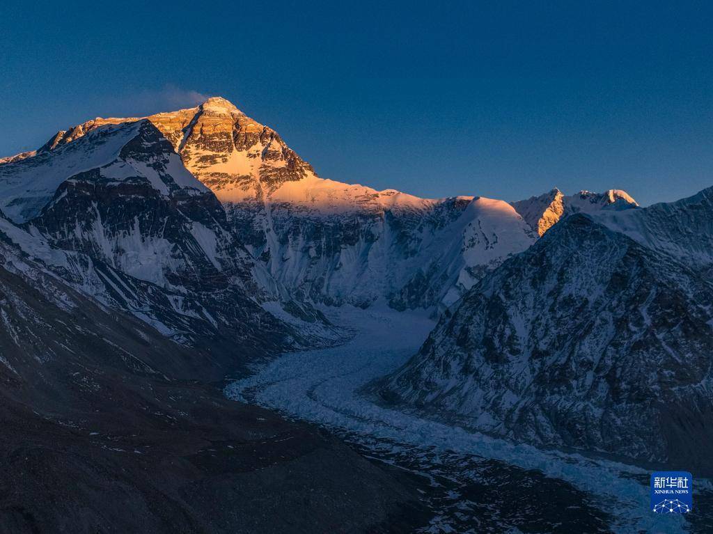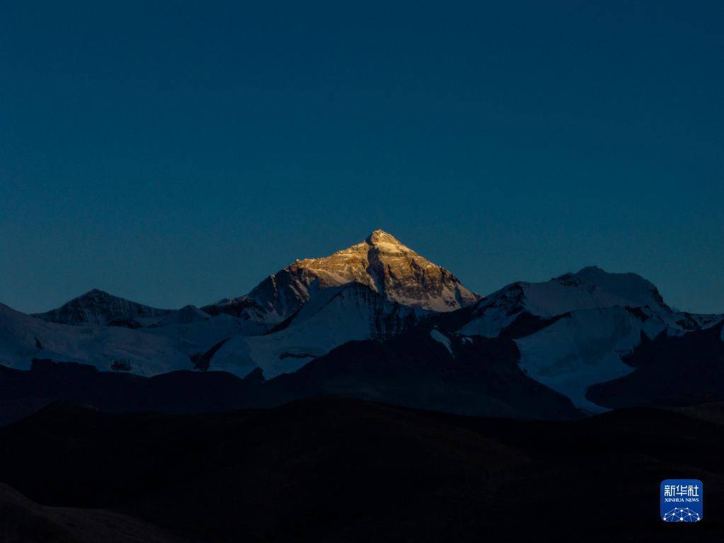这是5月11日日落时分拍摄的珠穆朗玛峰(无人机照片)。