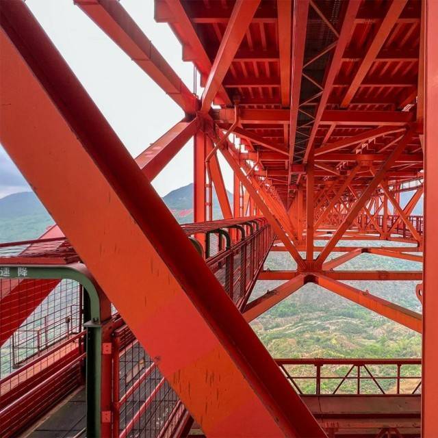 高空长廊观光通道可见大桥的钢结构
