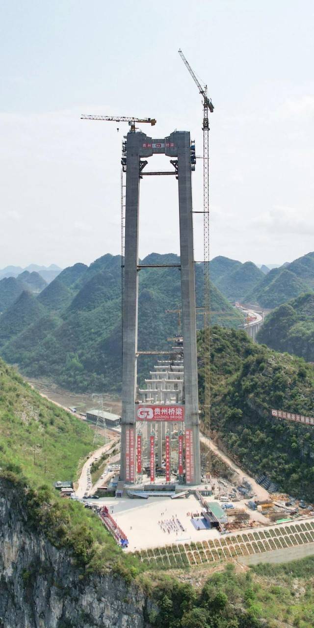 平塘特大桥最高桥塔332米,为世界第一高混凝土桥塔。