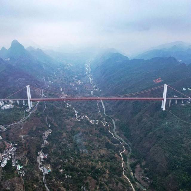 它于2016年12月29日建成通车,以565米垂直相对高度,刷新世界第一高桥纪录而闻名中外。