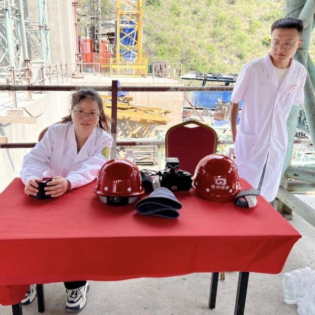 进入施工现场,首先需要正确佩戴安全帽;由于登顶属于高空作业范畴,患有高血压等高空作业紧急疾病人员严禁登顶,需要提前测量血压;乘坐施工升降机必须遵守先上后下的原则,严禁超载作业,最大载重人数为7人(包括操作员一共8人)。