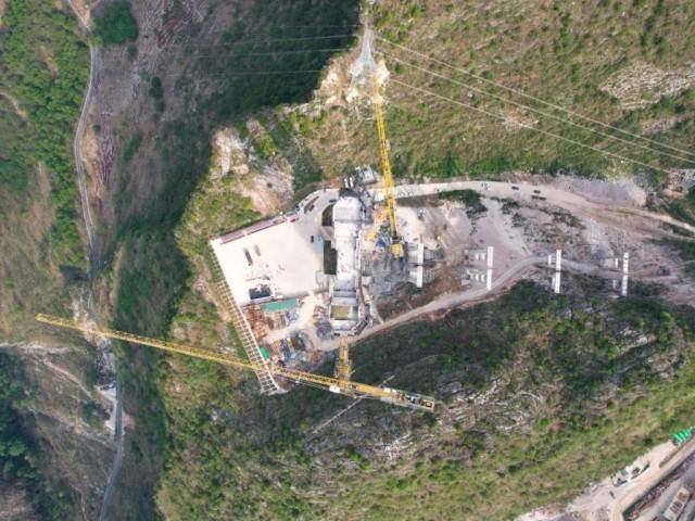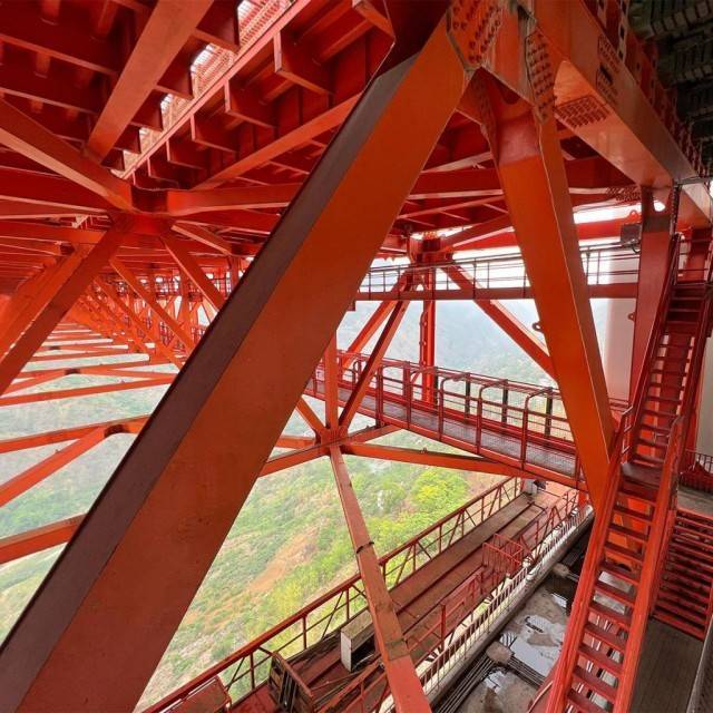 贞丰段的施工升降机,高约200米,登顶主塔,有着与主塔底部视野不一样的场景。
