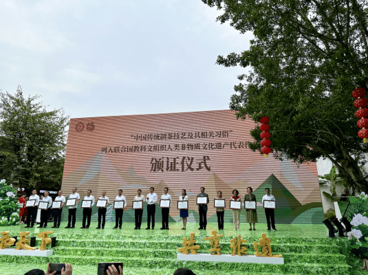 5月19日至22日,由文化和旅游部、福建省政府主办的2023年“茶和天下 共享非遗”主题活动主会场活动在福州市举行。文化和旅游部党组成员、副部长饶权岀席了活动开幕式和展示交流活动,并为被列入联合国教科文组织人类非物质文化遗产代表作名录项目“中国传统制茶技艺及其相关习俗”颁发了证书。