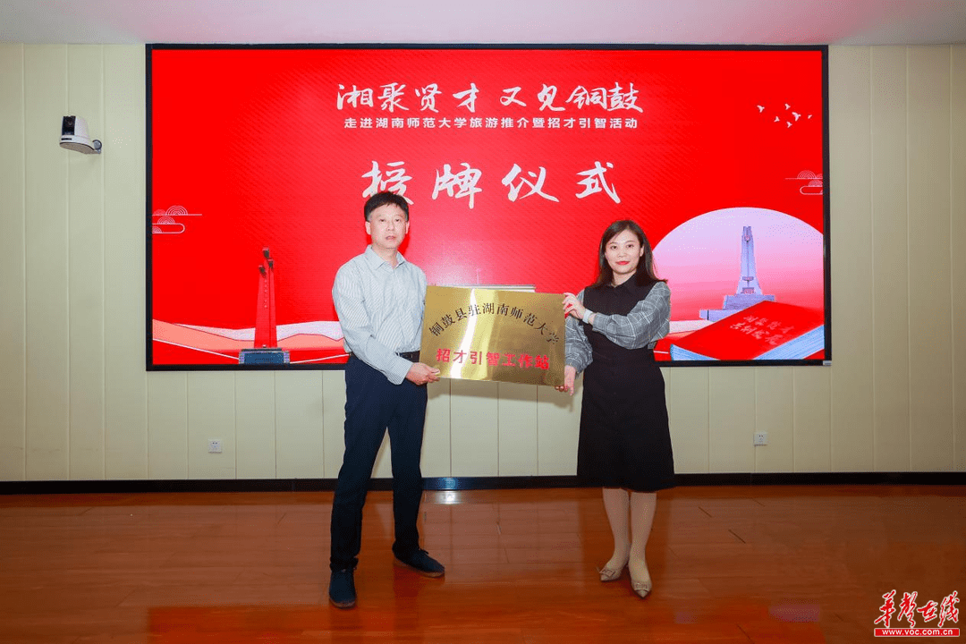 (“湘聚贤才 又见铜鼓”走进湖南师范大学旅游推介暨招才引智活动现场。)