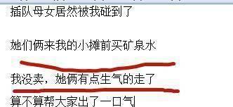 摊主说,正好碰上他们两个去买矿泉水,没有卖给爷爷奶奶,也不知道是不是让大家松了一口气。