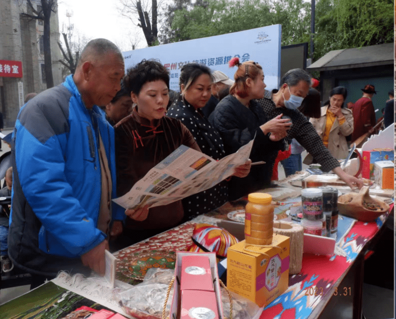 活动中,巴州文化旅游推介团队重点介绍了巴州及各县市独具特色的文化旅游资源和人文历史。展示了巴州特色农副产品,罗布麻茶、罗布麻蜜、野生黑枸杞、博湖野生鱼罐头、酷而乐香梨膏、坚果等众多旅游特色农副产品,吸引了袁家村旅游观光的游客参观、咨询、品鉴。
