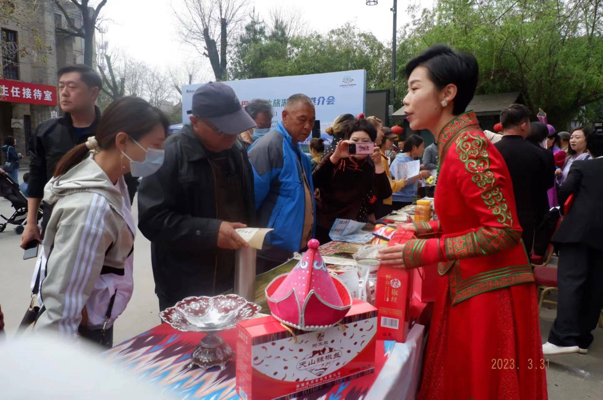 天山网讯(文图通讯员安梅报道)3月31日上午,有"关中印象体验地"之称的陕西省咸阳礼泉县袁家村,精彩纷呈的歌舞表演,吸引着大量游客驻足2023年新疆巴州文化旅游资源推介会活动现场。