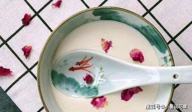 原料:纯牛奶、姜汁、白砂糖、玫瑰花瓣