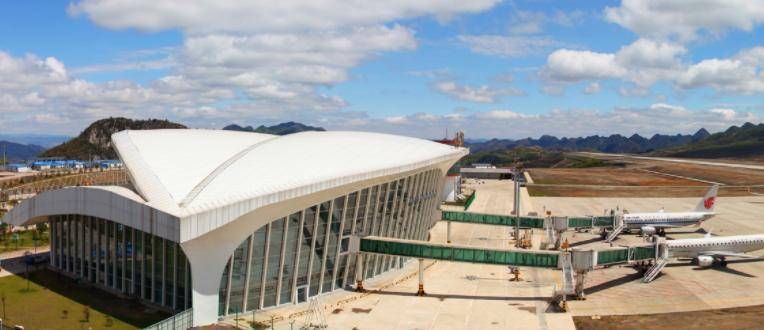该机场位于广西河池市,跑道长2200米。据了解,这是全省海拔最高的机场。为了建造它们,65座山丘被夷为平地。