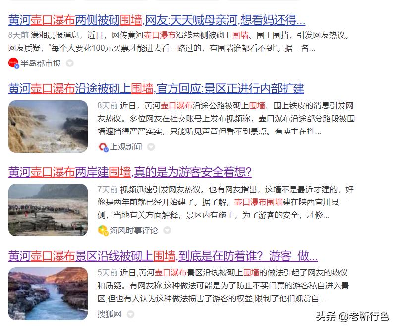 壶口瀑布围栏是一个网友不小心竖起来的,一下子火了起来。当地文旅部门解释说是为了安全。我就想知道山西和陕西的道路是不是为了安全都围墙了。道路安全是交通部门的工作,对吧?景区什么时候承担了这么大的社会责任?