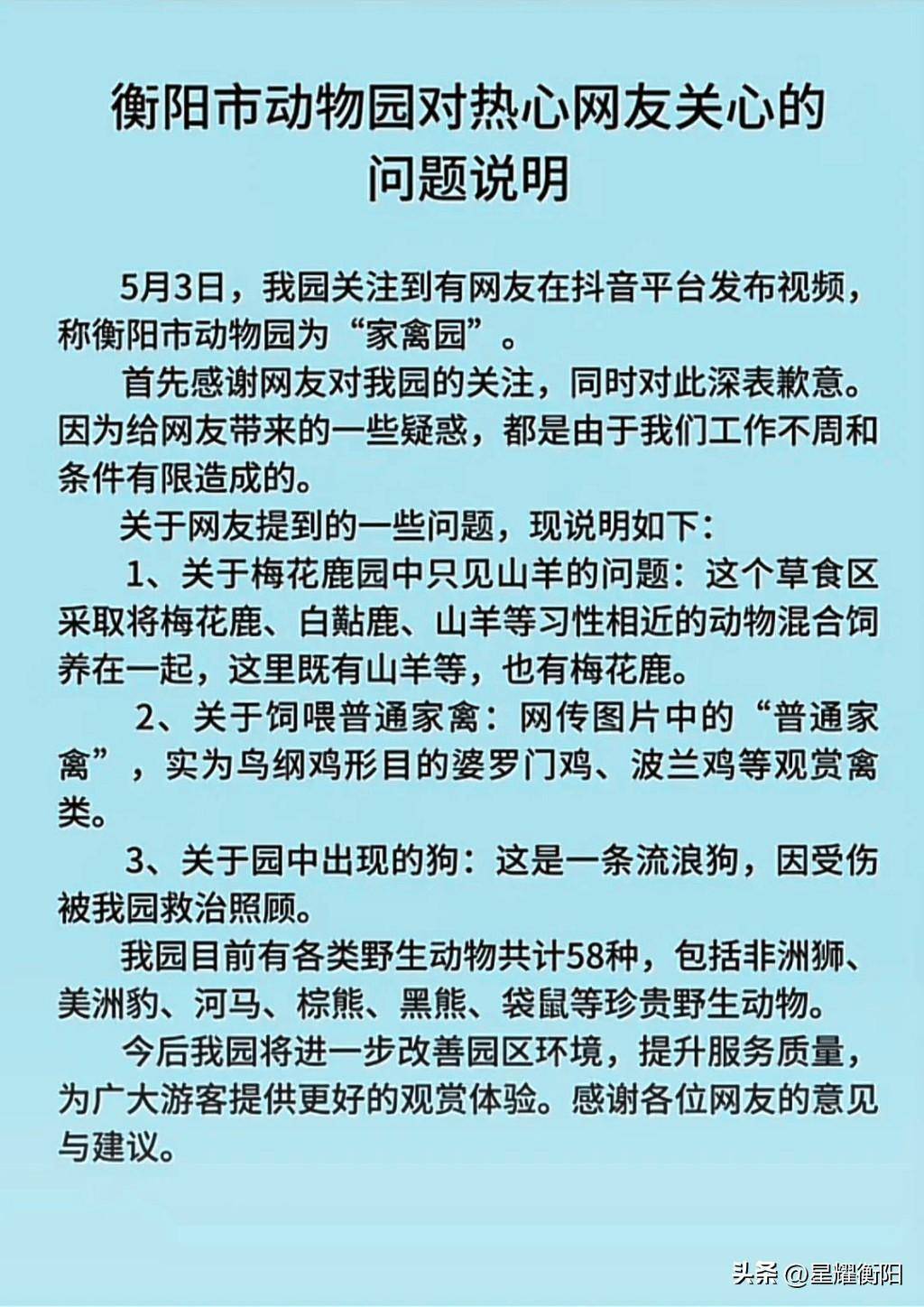 至于衡阳动物园,最近几天人气不减。4月5日上午,衡阳动物园发布了近期网友讨论的三个问题的相关信息:如下图