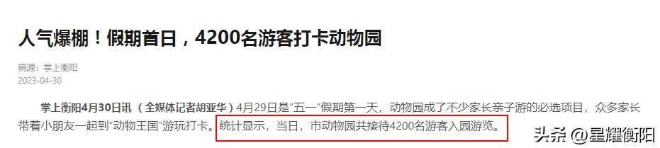 另外,据衡阳当地媒体报道,如下图所示,4月29日,衡阳动物园接待游客4200人次。