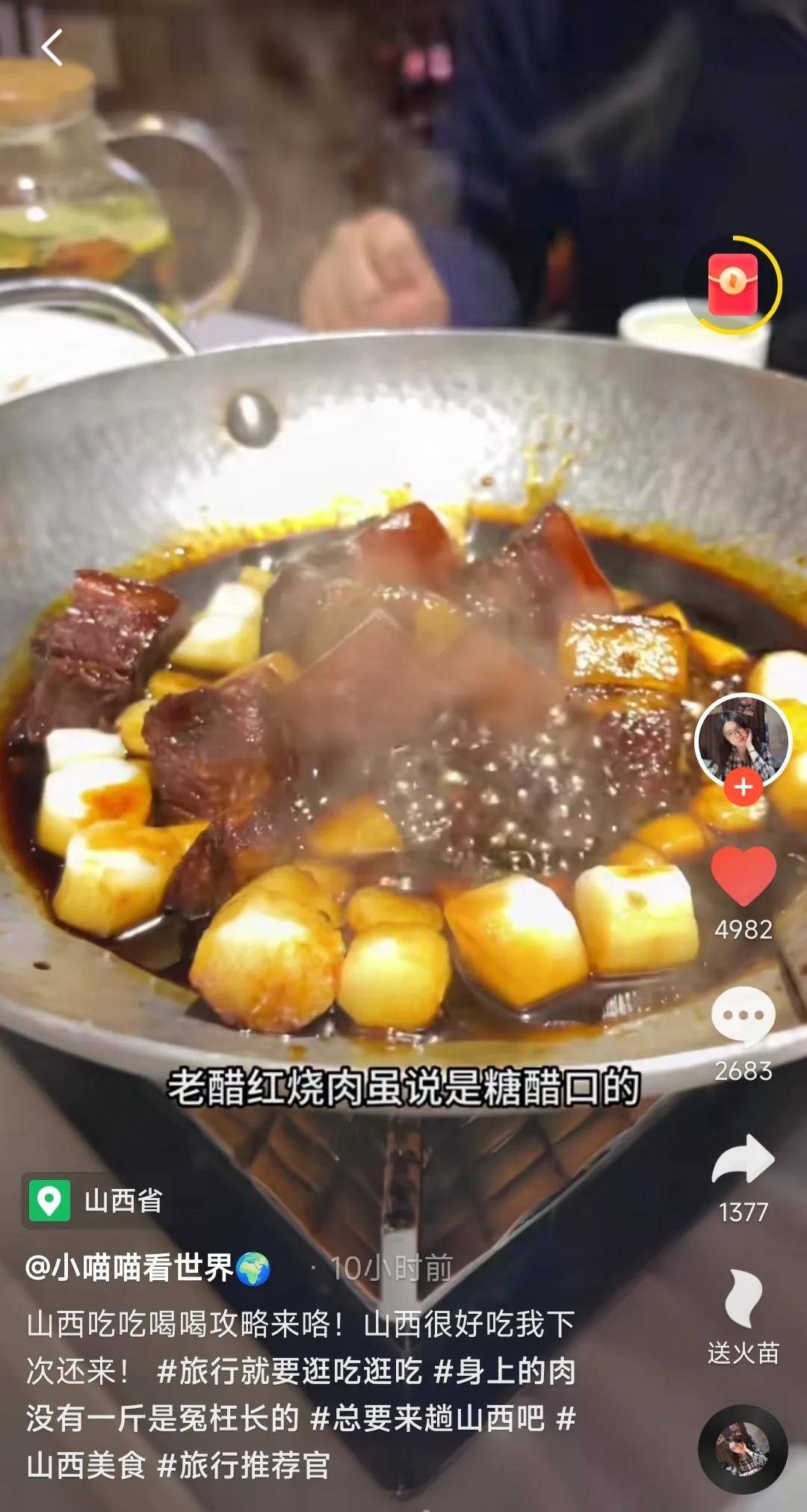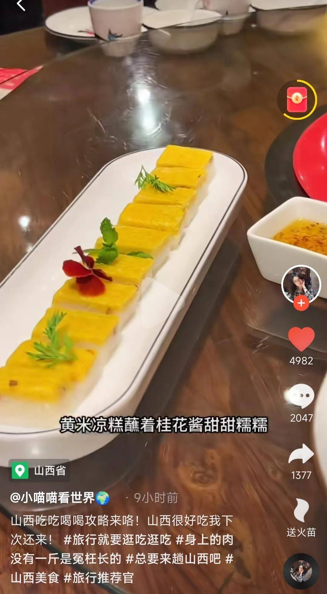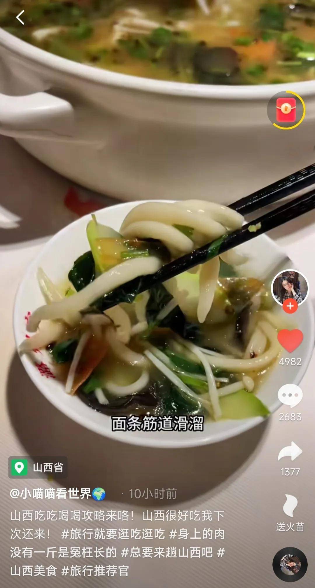 这位来自天津的博主,因为山西之行养了6只猫,上了热搜。我在她的视频里看到过很多山西美食,很多都是没吃过的。