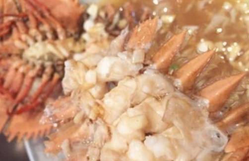 其实里面能吃的肉特别少,只有那么几口而已,不过上面会铺一些粉丝,这些粉丝也吸收了海鲜的味道,吃起来是非常好吃的,他们在制作的时候,会把这只龙虾放到油锅里炸,炸过之后吃起来更加香,最后在上面铺上粉丝,然后把它们放到蒸锅里蒸一下,再放一些他们自制的调味料,就算是可以了。