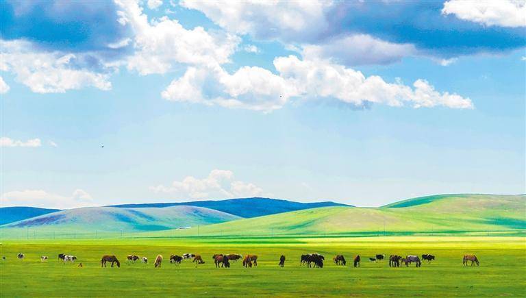 ?5月21日,内蒙古呼伦贝尔大草原水草丰茂,满眼青翠。 吕昊俊摄(中经视觉)