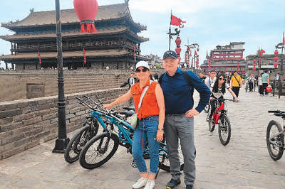 “中国的万里长城雄伟壮观,很值得游览。参观长城的游客很多,虽然排队时间长,但是大家都很守秩序”。近日,美国游客迪兰夫妇登上了慕田峪长城。这是他们第一次到北京旅游,先后游览了故宫、天安门广场、景山、颐和园、侨福芳草地和潘家园旧货市场等地。中青旅导游秦志鹏带迪兰夫妇还品尝了北京菜、川菜和粤菜等多种中国美食。“我很喜欢中国美食,尤其是带馅儿的,比如煎饺和小笼包,每次都要点两份”,迪兰先生说。