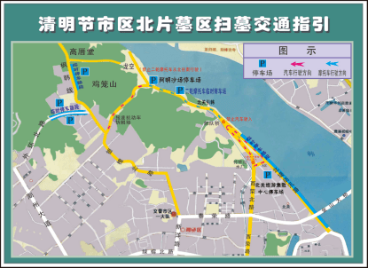 扫墓群众请将车辆停放于北关旅游集散中心停车场;北堤防汛路准许车辆靠堤边一侧顺向停放;鸿基混凝土有限公司停车场、阿明沙场停车场;进入竹竿山墓区道路的二轮摩托车请将车辆停放于竹竿山脚摩托车临时寄车场。