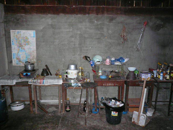 与我同住的泰国人Ame老师面对着众多蚂蚁则是处之泰然,有时吃完饭把餐具丢到厨房里十天半月也不会去管,用他的话说就是:“不看,不想,蚂蚁不会在盘子里筑巢的,等用的时候再去刷吧。”受他熏陶,我对于蚂蚁也慢慢地由先前的恐惧和痛恨变得无动于衷了,有时吃饭时看到盘子里多了那么几只蚂蚁的尸体,还忍不住感慨一下:今天又能补充蛋白质了。