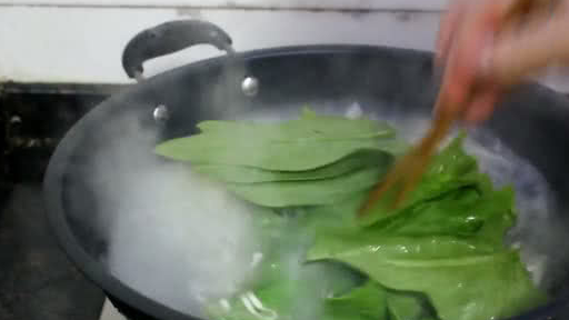 12、面条煮到8分熟的时候,再把青菜放入锅中烫一下,几秒之内捞出垫在碗底,再放上面,趁热拌下就可以吃啦。