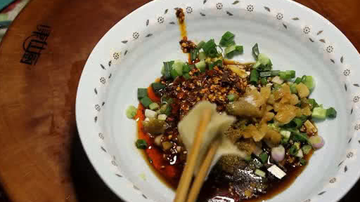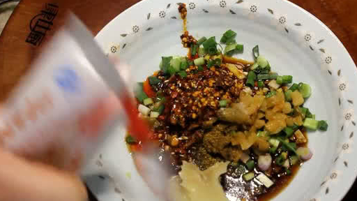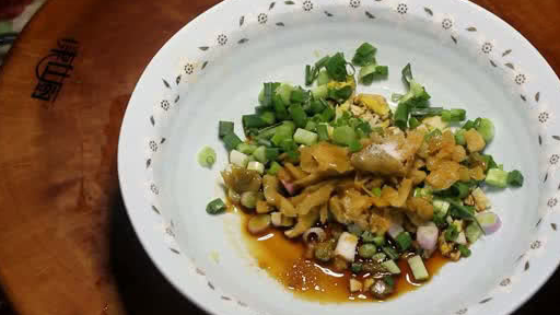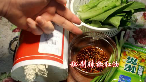 食材配料:小葱(香葱)、生姜、榨菜、咸菜(酸菜)、大蒜、辣椒红油、生抽、酱油、盐、(味精)、(陈醋)、(胡椒粉)、花椒粉。备注:带括号的自由选择,根据个人口味来调口。