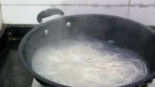 10、锅中烧水,水开后放入面条,中途快速的把它搅拌开,防止沾粘在一起,煮面的两个小技巧,一是火要大,二是水要多。