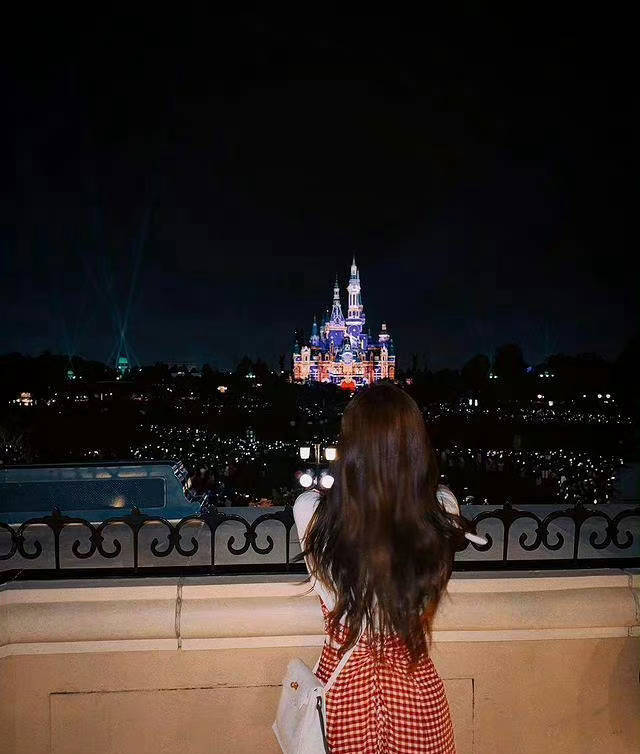 赵露思看迪士尼城堡。