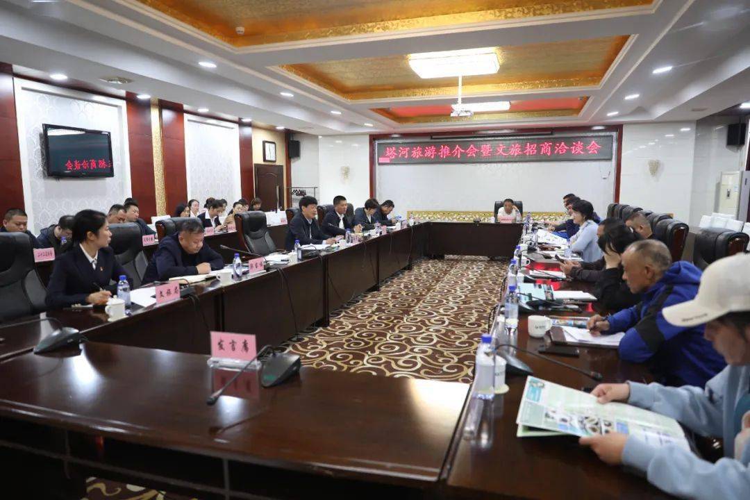 5月25日,塔河旅游推介会暨文旅招商洽谈会在林业局宾馆三楼会议室召开,地委委员、县委书记孙亮出席会议并讲话,强调:要争取达成优势互补、资源共享的合作,形成集群规模优势,共同推动“大北极旅游圈”高效、健康发展。副县长郭宝福主持会议,十八站林业局副局长栾青元及塔河县、十八站林业局相关单位负责人,大兴安岭各旅行社代表、塔河县涉旅企业代表参加会议。