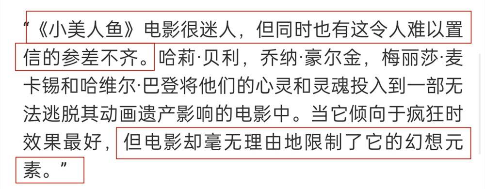 有数据佐证,诸如“迄今为止最好的迪士尼真人改编”之类的好评,就变得没什么可信度。反而是一些指向性明确的点评,相对来说更有参考意义。