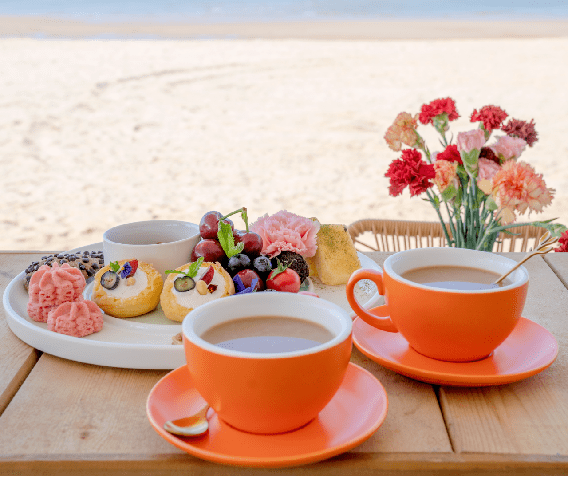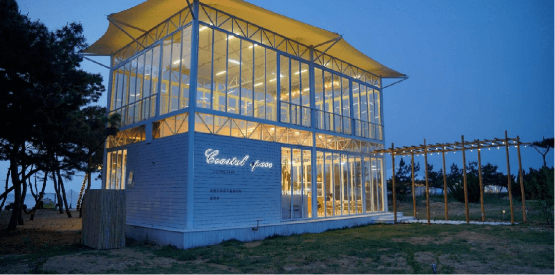 在营地服务中心,设有咖啡厅和酒吧,可以品尝到不同种类的精美咖啡、奶茶、鸡尾酒等饮品,还可以在二楼的露台上,一览壮美海景。