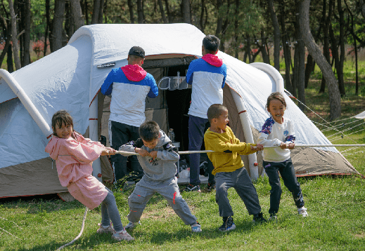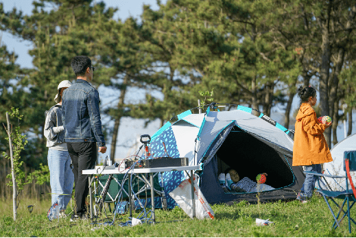 除此之外,松林下还有专门为露营爱好者规划的大片自由露营区域,如果你是行动派,不如约上 家人朋友一起亲手体验搭帐篷的快乐,定会成就感满满~