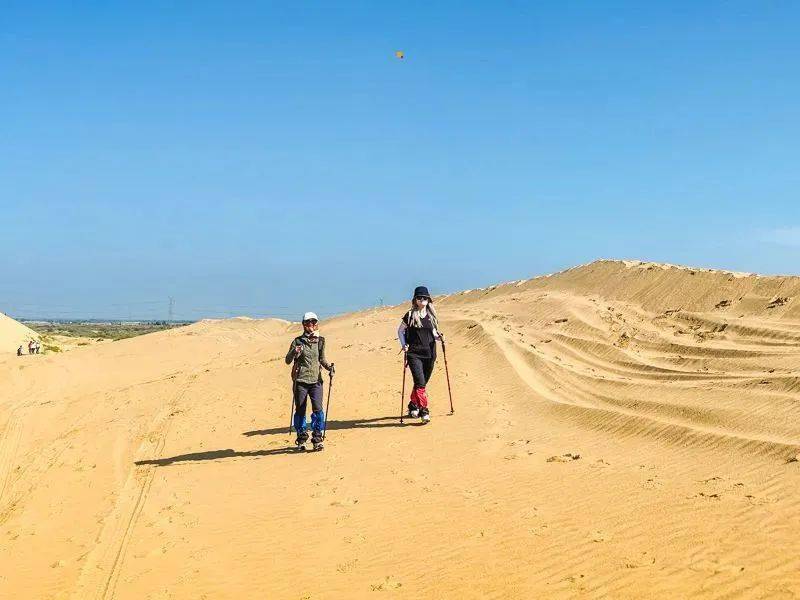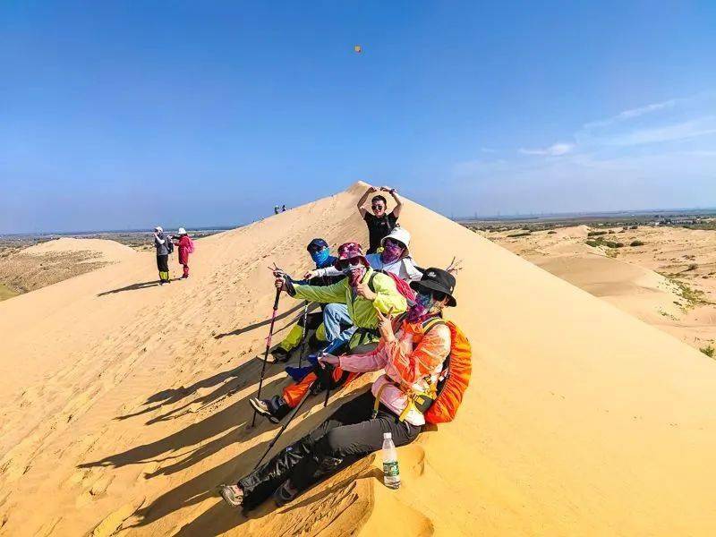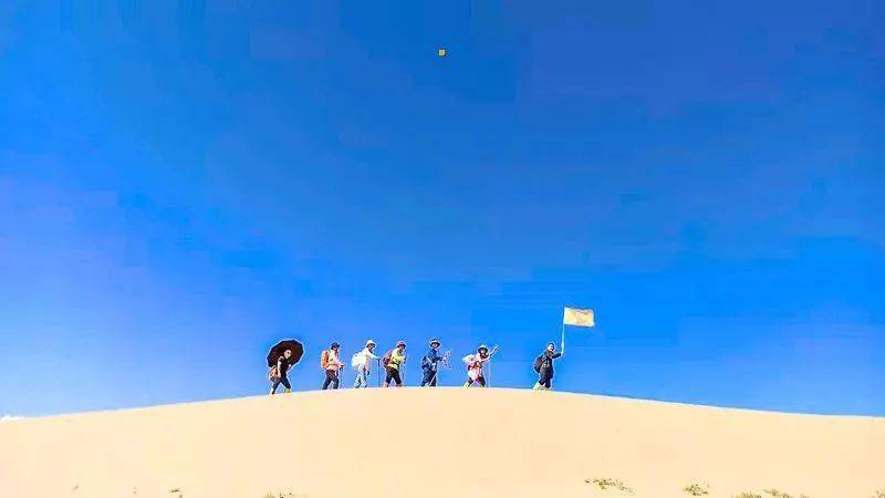 在沙山中行走要求队员有更好毅力与耐力,跟紧领队的步伐。途中需翻越几座比较高沙山,跨越穿沙公路,中途在沙漠中的绿洲边休息、路餐(注:每人需准备2-3升水,午餐1份)。