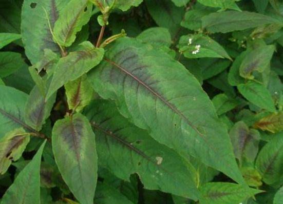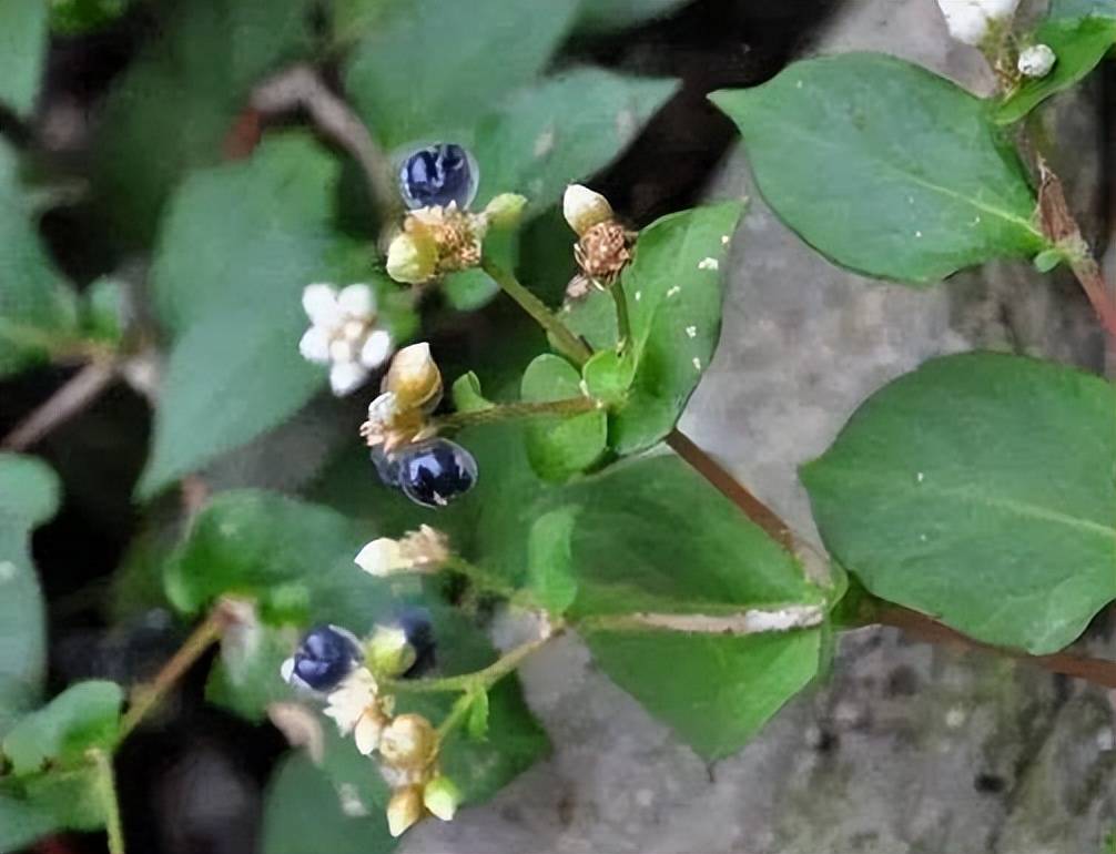 这种野草的叶片中央是深红色的,有渐变的轮廓,和苋菜有一点相似,看上去现实被火烧过一般,它的名字叫做“火炭母”。它是多年生的草本植物,在阴湿的山谷和草地里经常能见到,喜欢阴凉湿润的环境,在我们国家陕西和华南都有分布。它的果实也比较独特,是深紫色的小球,长相类似煤球,在野草中算是辨识度较高的植物,在乡下见过它的人应该都会有印象。