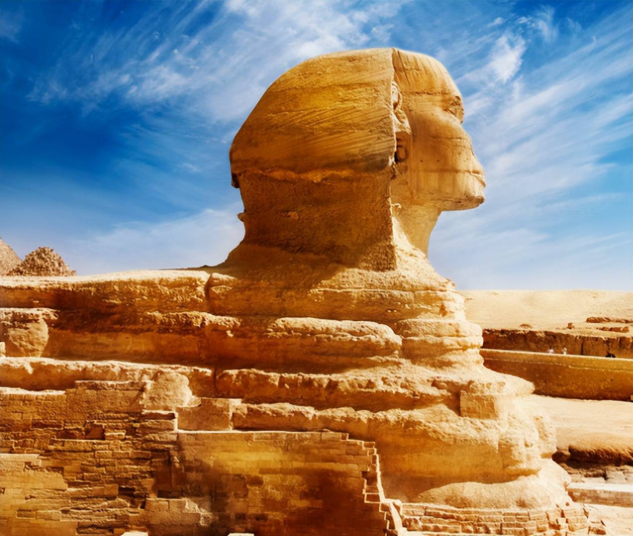 时间一长,狮身人面像被沙漠所吞噬,渐渐地将雕像埋没至了面部区域。后续为了让雕像重现,埃及开始整顿流沙并且清理雕像上周围的沙子。
