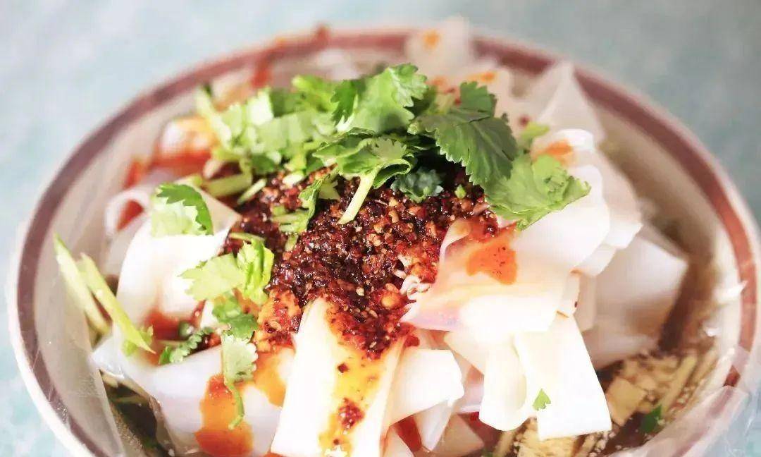 裹的凉皮更是一绝,几十张晶莹剔透的大面皮叠在一起摊在案板上,放上黄瓜丝、熟花生碎、面筋、香菜等,不少店还会加上拌好的凉面,牛筋面,再用刷子刷上厚厚一层芝麻酱,辣椒油。