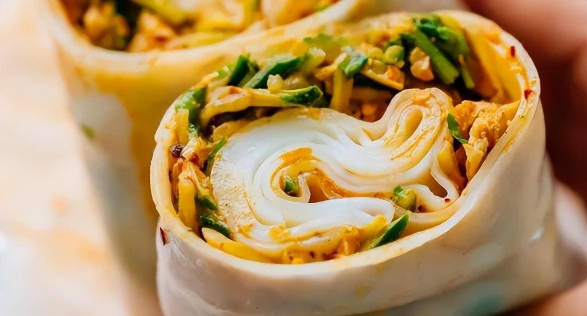 拿在手中,隐隐约约中还可以看见裹凉皮里翠绿的黄瓜丝和红油辣椒。一口下去咸淡一致的才是合格的裹凉皮。