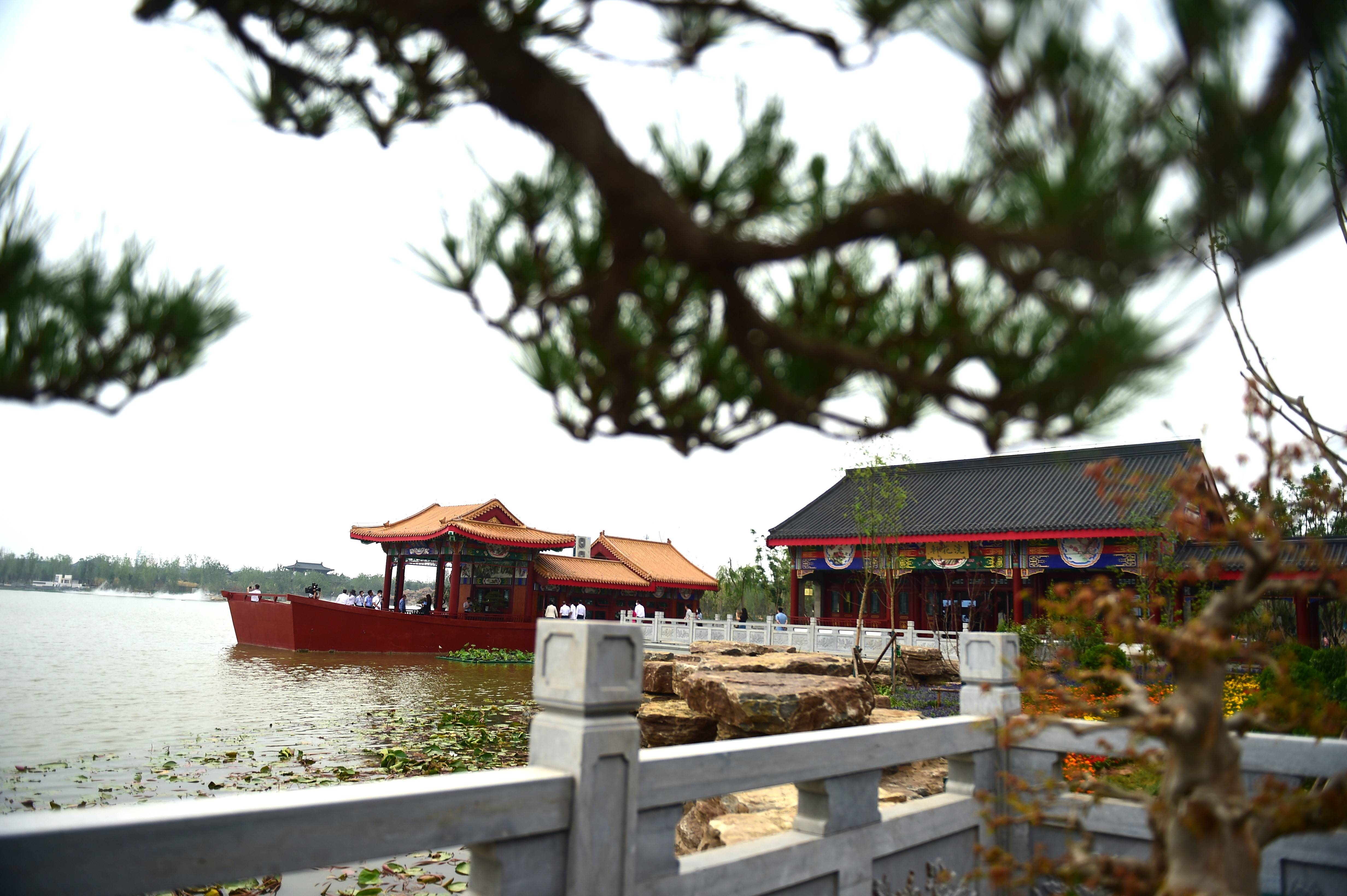 澎湃新闻(www.thepaper.cn)从开幕式获悉,这是河北首次将园林艺术与运河文化密切关联的园博会,整个园博园围绕大运河畔兴建,其中沧州展区以运河名园为主题,通过运河两岸的园林历史文化,再现沧州运河畔“河上列芳园”的盛景,以运河最为繁华的明清时期建筑风格为主,突出“运河名园”的滨水特质。