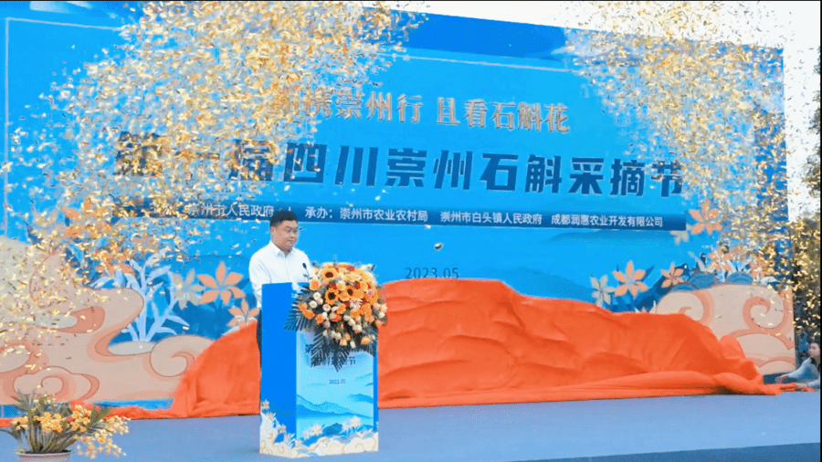 百花争妍风光好,石斛花开正当时。为展示石斛产业发展成果,宣传推广石斛文化,5月26日,由崇州市人民政府主办,崇州市农业农村局、崇州市白头镇人民政府、成都润惠农业开发有限公司承办的第一届四川崇州石斛采摘节在白头镇启幕。