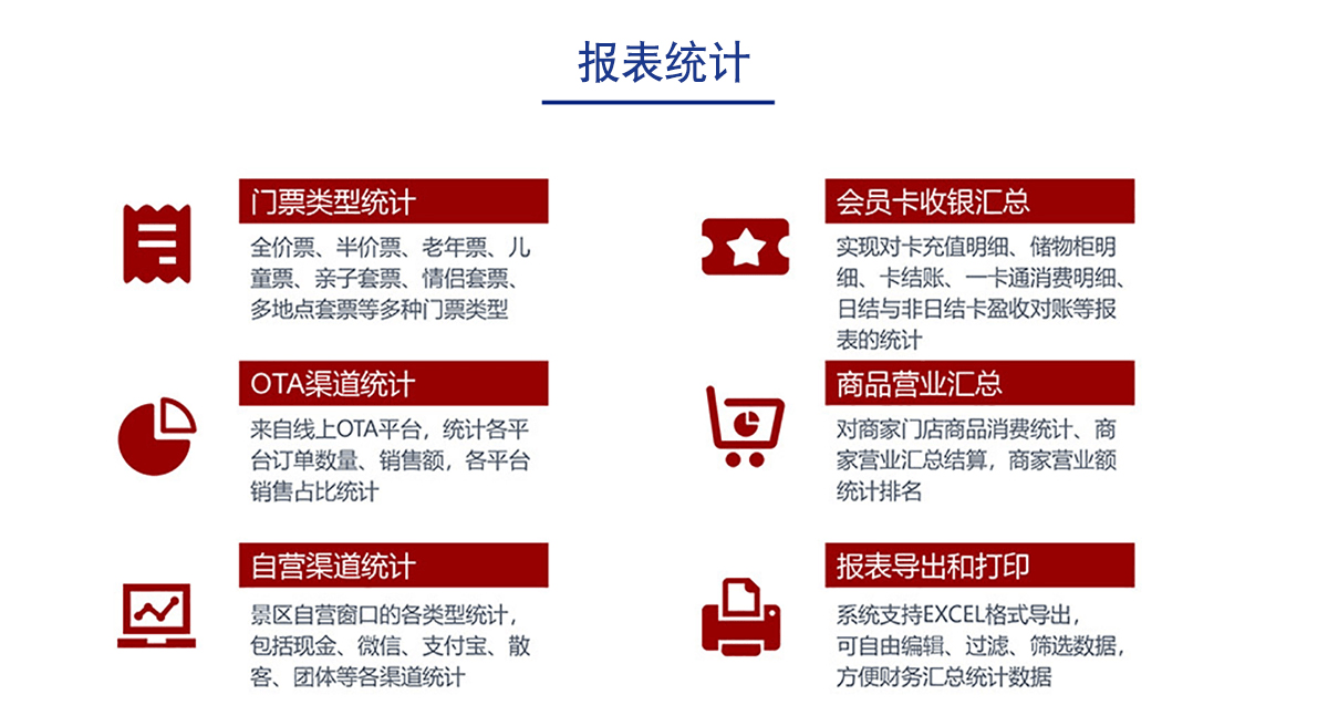 智能化景区检票系统还具备智能管理和数据分析的能力。系统可以实时监测景区的人流情况、票务销售情况等数据,并进行智能分析和预测。通过数据分析,景区管理者可以更加准确地了解游客的偏好和行为习惯,为景区的服务和活动安排提供有针对性的优化。同时,系统还能生成详细的报表和统计数据,为管理者提供决策依据和业务分析,推动景区运营的智能化和精细化。