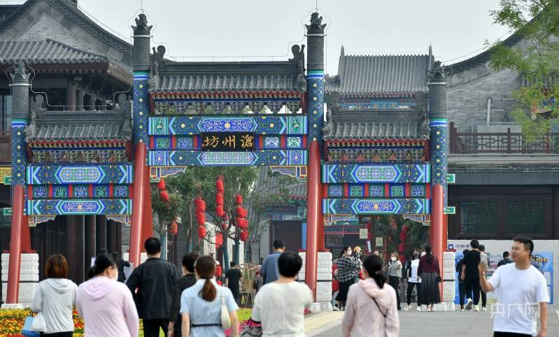 游客游览沧州园博园内的沧州坊(央广网记者 王伟倩 摄)