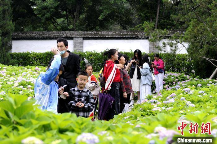 原标题:西安小雁塔绣球花开引游人