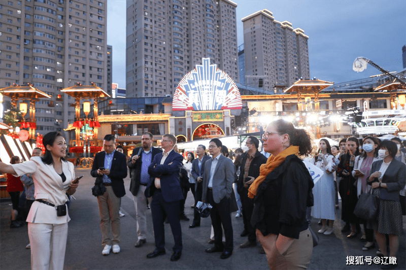 活动中,领事官员和留学生一起走进老北市南区“真有贺”沉浸式商业综合体探寻宝藏美食,感受舌尖上的沈阳;看传统相声表演,观非遗摔跤绝活,领略历史悠久的沈阳;解锁特色文创礼物,感受浪漫多元的沈阳;欣赏“凤舞九天”特色演出,感受时尚幸福的沈阳……