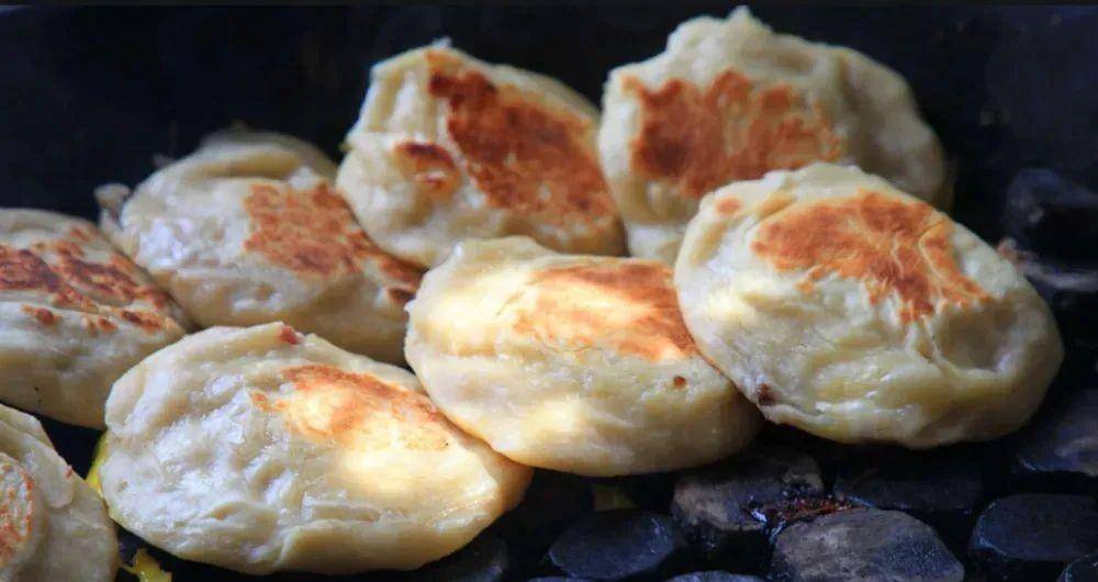 以糯米粉为材料的黑芝麻糍馍馍,糯糯的面皮包裹着炒熟后香酥的黑芝麻或豆类,好似馅饼,有一种独特的香味。两面被烤制成金黄色后,吃着软糯可口,非常诱人。