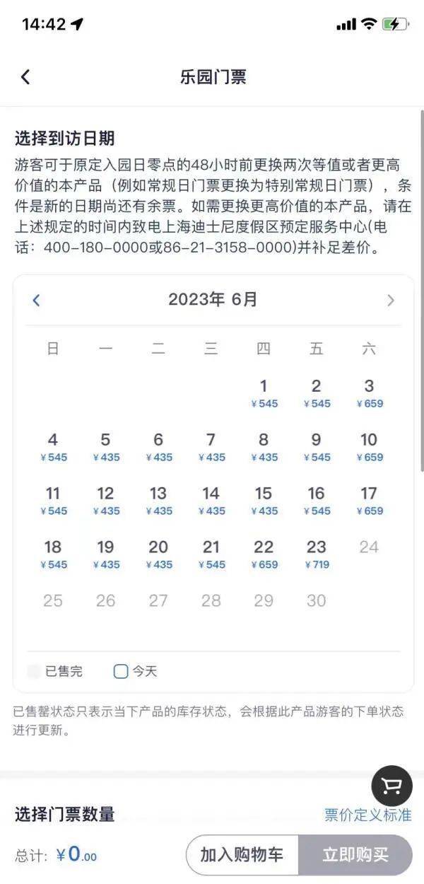 此前,上海迪士尼度假区官网曾公布上海迪士尼乐园票务调整方案,并表示,该调整方案将于2023年6月23日起实行。登入迪士尼度假区APP可发现,游客现在已经可以购买上海迪士尼乐园6月23日的门票。