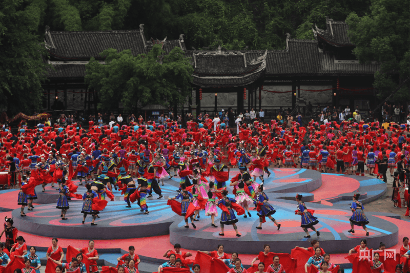 央广网重庆5月26日消息(记者白刁尹)5月26日,2023·第十二届中国乌江苗族踩花山节在重庆彭水自治县蚩尤九黎城开幕,来自国内外的嘉宾、八方游客和全县上万名穿着节日盛装的苗乡儿女,一起同唱娇阿依、共舞踩花山,共同体验多姿多彩的民族风情,分享灿烂辉煌的民族文化。