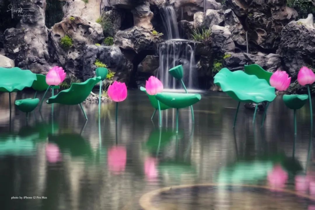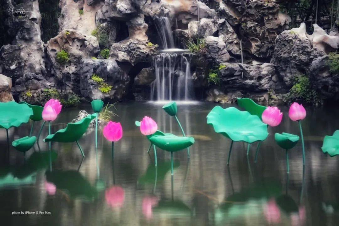 可惜这几枝假荷花的颜色太艳,手机很难处理好“色彩溢出”的毛病,后期就只好简单“套用”了一下自带的滤镜。其实个人觉得它们有点“画蛇添足”,远观还好,近赏就会显得跟环境格格不入,诸位觉得呢?